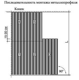 - Когда наклон ската превышает 30 градусов, оптимальное накладывание листов друг на друга составляет 10-15 см.