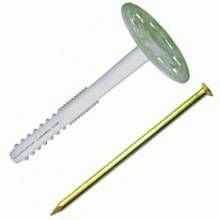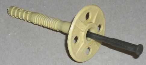 Дюбель-зонты выпускаются из прочного полимера, внутри которого должен быть установлен металлический стержень или длинный гвоздь. Их используют там, где фиксация пластов утеплителя по-другому невозможна. Монтаж прост и надежен: