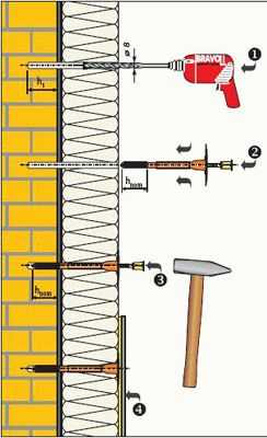 Монтаж на дюбели для крепления утеплителя с «грибками»