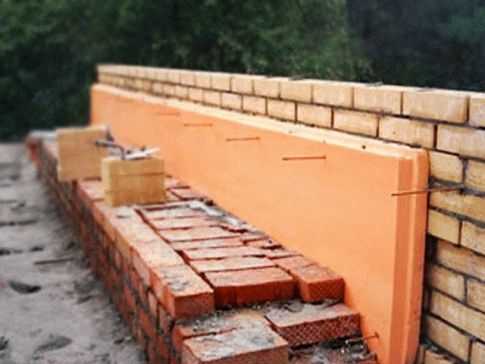 Облицовочный кирпич укладывается в качестве наружного слоя. Им можно облицевать вплотную или на некотором расстоянии от пенопласта, оставив воздушную прослойку в качестве дополнительного изолирующего слоя.