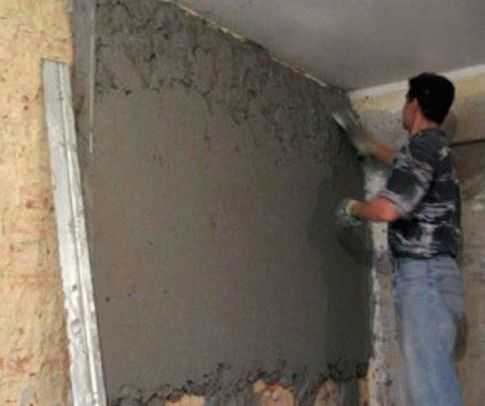 Иногда невозможно обойтись без грубого выравнивания под маяки. Когда стартовый слой высохнет, наносится теплая штукатурка. С ней внешняя стена угловой квартиры более комфортная при прикосновении, и она меньше промерзает.