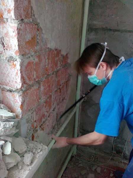 Итак, допустим, стена у нашего гипотетического дома более или менее ровная, можно приступать к монтажу. Очищаем стену от пыли и мусора, заделываем трещины и сколы, хорошенько ее грунтуем.
