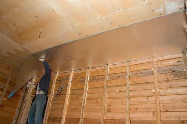 Утеплитель укладывается между рейками враспор, чтобы избежать появления «мостиков холода». Сверху укладываем пароизоляционный материал, прикрепляя его опять — таки к рейкам. Укрываем всю эту теплоизоляционную конструкцию гипсокартоном, плитами МДФ или ПВХ, используя в качестве крепежа вертикальные рейки, производим отделочные работы.