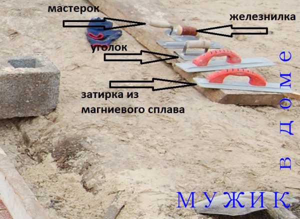 - лопаты для загрузки стройматериалов в емкости и для распределения готовой смеси,