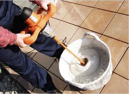 - с помощью электродрели полученную смесь нужно тщательно перемешать, используя для этого насадку-миксер;
