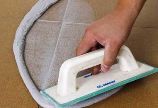 Швы между плиткой заполняют приготовленной согласно инструкции смесью при помощи резинового шпателя. Шпатели с эластичной частью чёрного цвета (резиновые) более жёсткие, белого (каучуковые) – мягкие.
