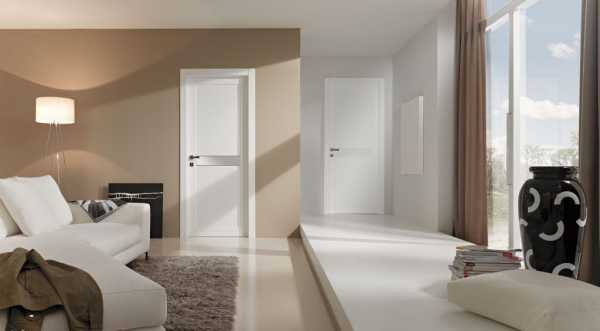 Для создания воздушности и легкости в интерьере используются белые дверные полотна. Они безупречно в тон сочетаются с цветом оконных рам, белым ламинатом или светлой мебелью. Нередко такие двери применяются для насыщения французского или прованского стиля.