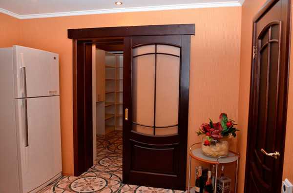 Такие двери популярны для современных стилистик и напоминают принцип дверей-купе.