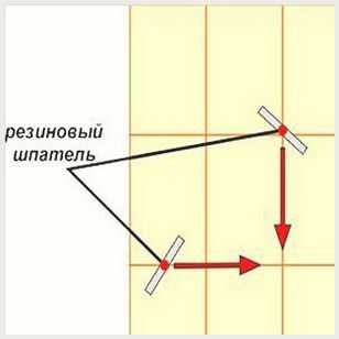 - терка располагается под углом 45º к плиточной кладке и прижимается к ее поверхности;