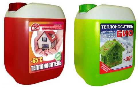 Теплоноситель антифриз можно применять в системе до температуры -65 °C. Поначалу антифриз использовали только для автомобильного двигателя, а теперь его можно выбрать и для отопительной сети из большого ассортимента бытовой серии антифризов.