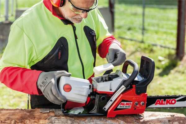 Объем бензобака. Объема 0,5 л хватит приблизительно на 30 минут непрерывной работы. Можно подобрать модели с более объемным баком, но нужно учитывать, что тогда бензопила будет тяжелее.