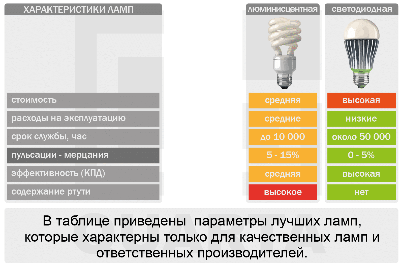 Качество светодиодной лампы складывается из нескольких весьма существенных параметров: