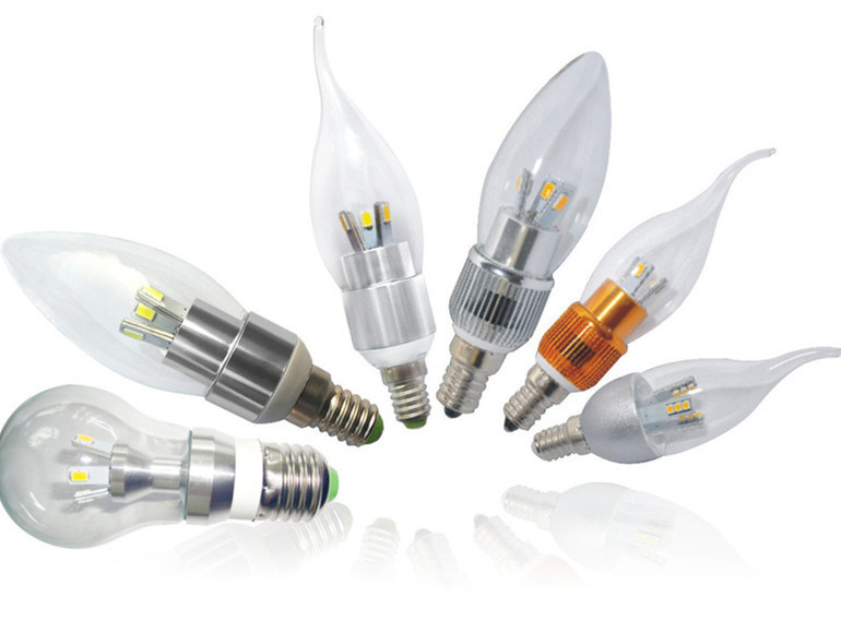 Виды светодиодных ламп: плафон в виде груши, как у лампочек накаливания, свечи или «кукурузы». Дают рассеянный свет.