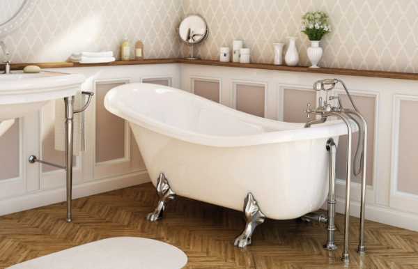 Этот современный материал хорошо держит тепло, не издает шума при наборе воды, и может служить долго. От времени акриловая поверхность не тускнеет, ванна длительное время будет сохраняет привлекательный внешний вид. В пластик добавляют специальные вещества, предупреждающие развитие бактерий.