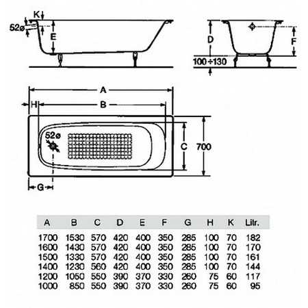 Маленькие или средние, или большие чугунные ванны размеры имеют следующие: