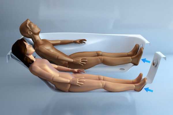 Оптимальным вариантом выбора ванны станет та, в которой вы сможете принять положение полулежа. Ноги при этом должны быть вытянуты, а коленки не выступать из воды, чтобы разница температур вас не раздражала.