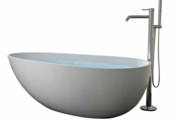 Овальные ванны, как правило, ставят в центре ванной комнаты или на некотором отдалении от стены, они имеют красивые ножки и являются не только функциональным предметом, но и украшением интерьера.