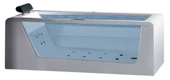 Формы таких ванн могут быть любыми, так как акрил чрезвычайно пластичен. Это позволяет легко делать в нем любые отверстия и оборудовать ванны гидромассажем, системами аэрации воды, разнообразной подсветкой. При выборе такой ванны важно обратить внимание на толщину пластика, 5-6 мм достаточно, чтобы изделие служило долго. Поверхность обязана блестеть и быть идеально ровной.