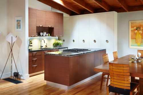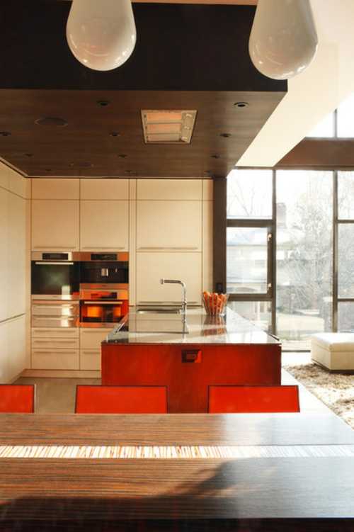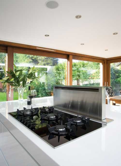 Встроенная вытяжка — модное и эффективное решение, которое призвано не нарушать стиль кухонного интерьера. Устройство монтируется внутри подвесного шкафчика. При этом инженерам потребовалось учесть ряд особенностей: