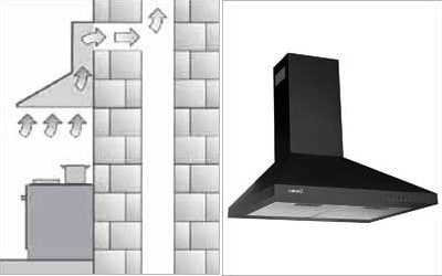 Такие устройства больше походят на часть камина. Для обеспечения их работы в обязательном порядке на кухне должна иметься вентиляционная система с выходом в воздуховод. Самые первые модели не имели фильтров, и их производительность обеспечивалась только качеством работы вытяжной вентиляции.