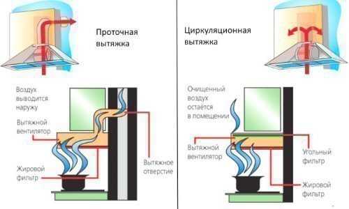 Принцип работы проточной и циркуляционной вытяжки