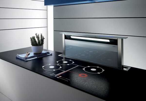 Еще одна сложность, которую с успехом решили инженеры, — отличия в размерности зон забора и площади плит, варочных поверхностей. Самый современный вариант встроенной вытяжки имеет выдвижной блок. Он позволяет полностью охватить зоной забора площадь готовки и гарантирует удаление всех неприятных запахов. Устройство легко управляется — при выдвижении блока вытяжка автоматически включается.
