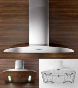 Желающим оснастить кухню предложены «плоские» подвесные приборы, встраиваемое оборудование, купольная или «каминная», она же настенная и угловая вытяжная техника.