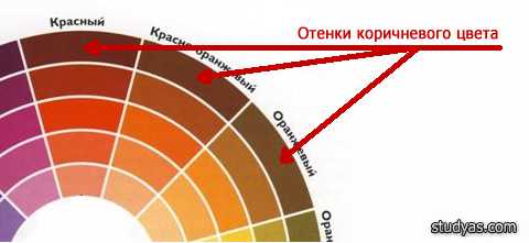 Что же касается коричневого цвета, то тут всё несколько сложнее. Поскольку он, является третичным цветом, т.е. смешанным, то большое значение имеет то, от какого именно цвета он произошёл. Если коричневый образован на основе подмешивания чёрного в любой из этих цветов: красный, красно-оранжевый, оранжевый, то сочетание этих цветов создаётся по общим правилам цветового круга.