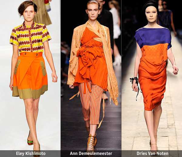 Темно–оранжевый хорошо смотрится с бледно–желтым, оливковым, коричневым, вишнёвым.