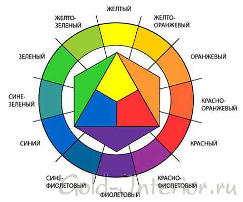 Также, цветовая гармония может образовываться сочетанием цветов расположенных в вершинах вписанного в цветовой круг равностороннего треугольника. Поворачивая такой треугольник внутри круга вы можете получить любое сочетание цветов, при этом оно будет обязательно гармоничным. Успешное сочетание цветов и красок в интерьере — залог уюта в доме.