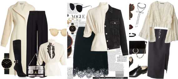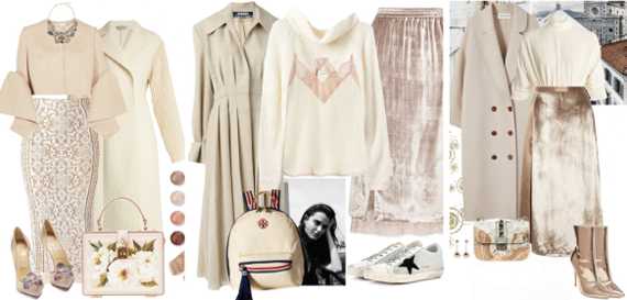 Молочный цвет в гардероб вносит утонченность, а возможность комбинаций – раскрывает богатство цвета. Какие гаммы самые удачные? Давайте посмотрим на примерах.