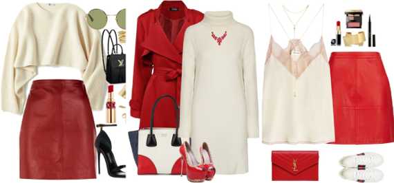 Для прохладной погоды подойдет комплект, состоящий из молочного джемпера, классических черных брюк, красных полусапожек и алого пальто. Уютно, красиво и удобно – что еще нужно для женского счастья?