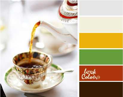 Богато пить чай принято во многих частях света, но чопорная изысканность с богатым сервизом является частью английской культуры. Белый, как символ традиционности не мог пройти мимо столь приверженного привычкам и ритуалам народа, как и богатая позолота. Картина состоит из белого с серым, молочного, светло-горчичного, травянисто-зеленого, терракотового, горького шоколада.