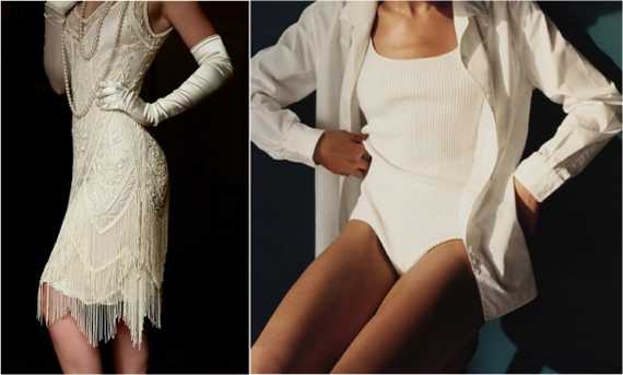 Молочно-белый монолук может выглядеть очень нарядно, а может – вполне повседневно. Элегантный костюм, коктейльное, вечернее платья, туалет невесты наконец – яркие наряды, символизирующие тягу к идеалу, чистоте. Но если надеть брюки с вязаным свитером или юбку, топ, вязаный кардиган, то монообраз станет кэжуальным.