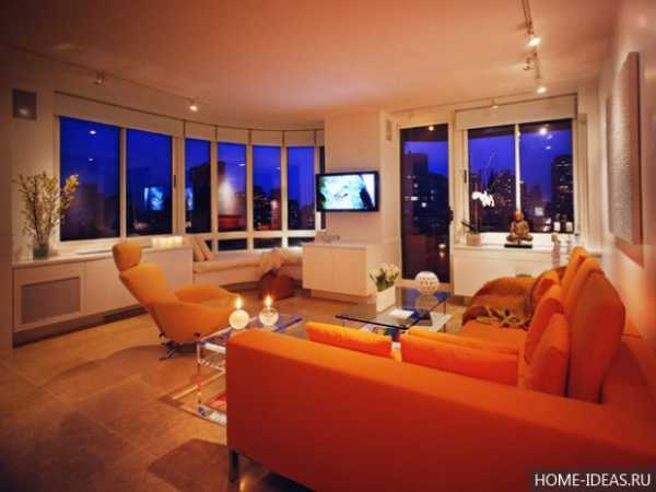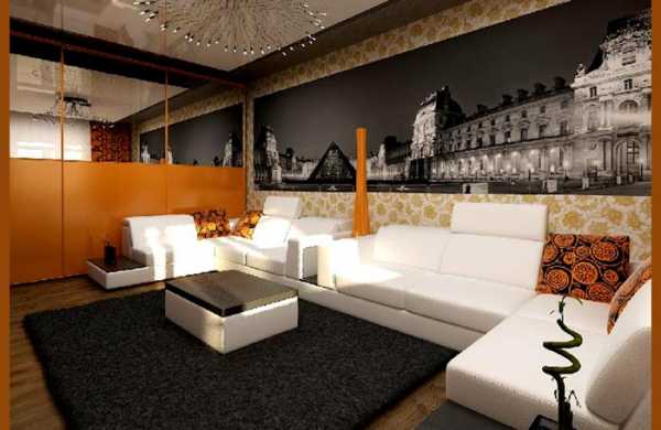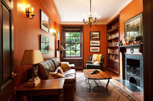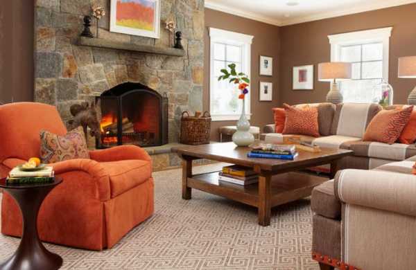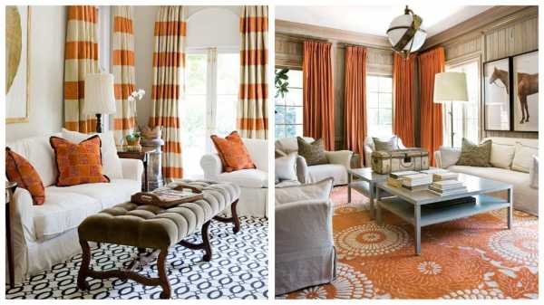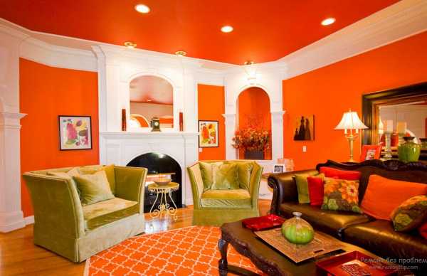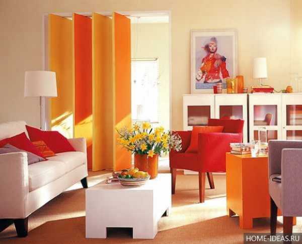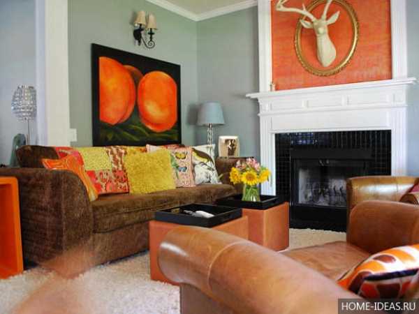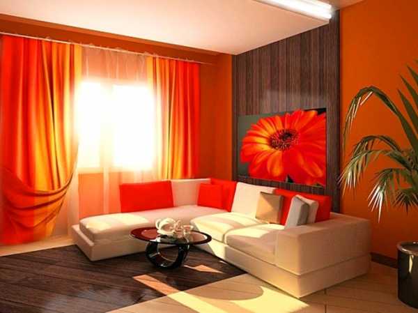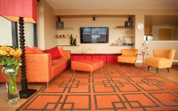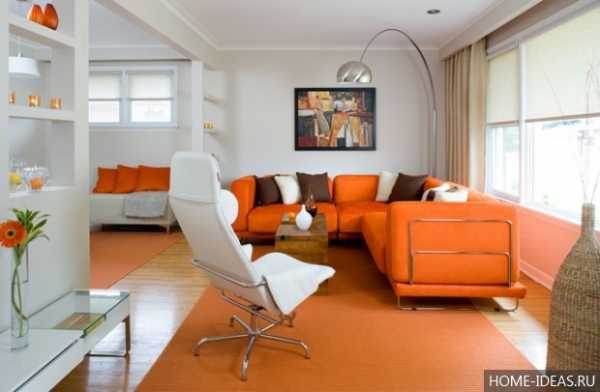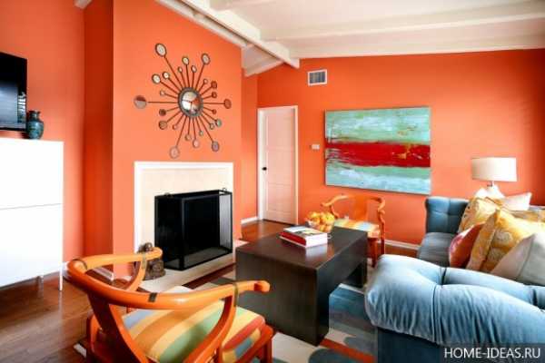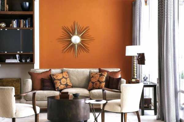 Оранжевый цвет в интерьере гостиной