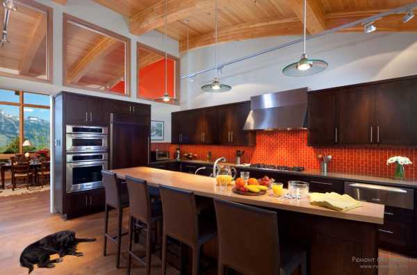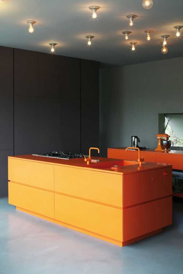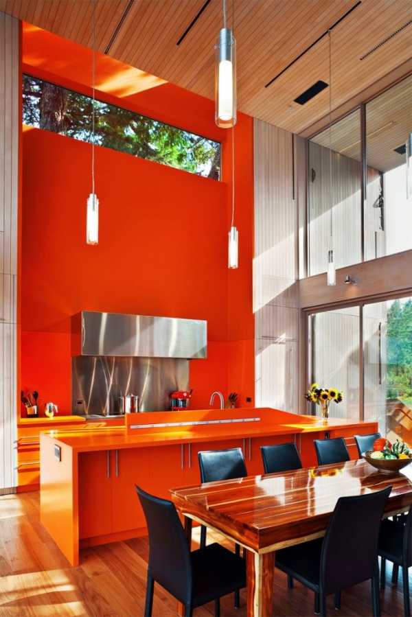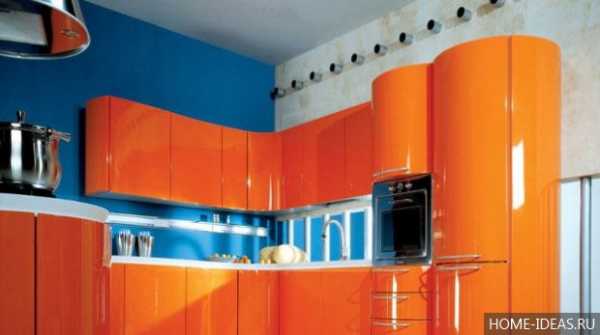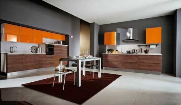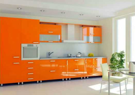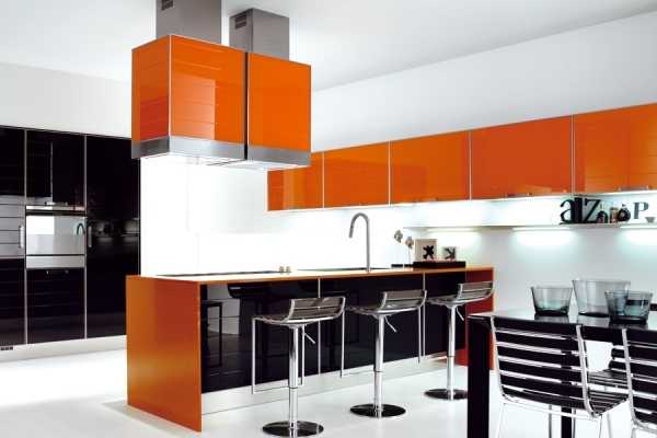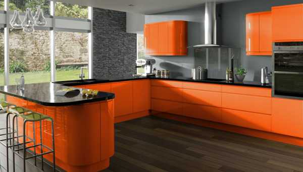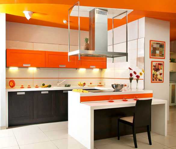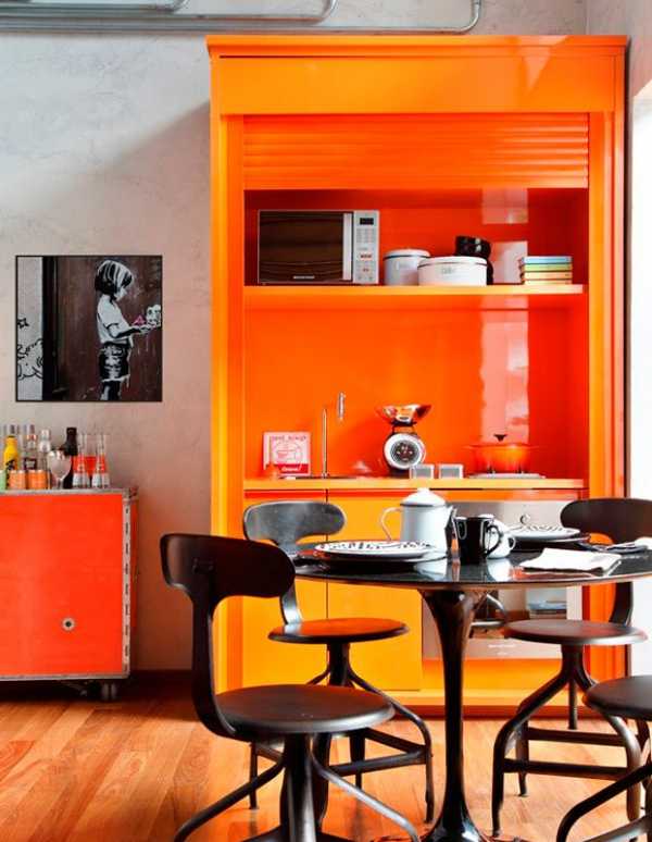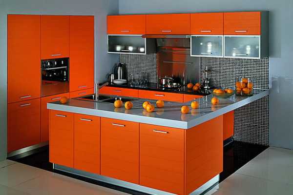 Оранжевый цвет в интерьере кухни