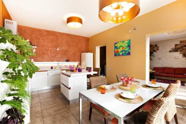 Оранжевый располагает к дружеской беседе и возбуждает аппетит – самое то для кухни или столовой.