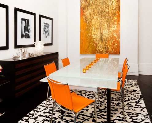 В общем, все строится на температурном балансе. Оранжевый интерьер сам по себе очень теплый, но добавив белый цвет, можно сделать его более умеренным. И, соответственно, чем больше оранжевого, тем теплее обстановка и, наоборот, чем больше белого – тем она спокойнее. Последнее, кстати, больше подходит для гостиных комнат, так как для приема людей с разными температурными предпочтениями, лучше выбирать нейтральную обстановку и добавить в нее немного тепла в виде оранжевых акцентов.