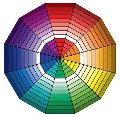 При выборе оттенков ориентируйтесь на цветовой круг: сочетайте оттенки, находящиеся в одной внутренней окружности.