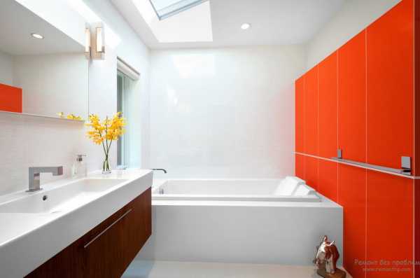 А также хорошо использовать эти два цвета в ванной комнате: чистота и стерильность белого будет как бы подзаряжаться энергией оранжевого и бодрить по утрам.