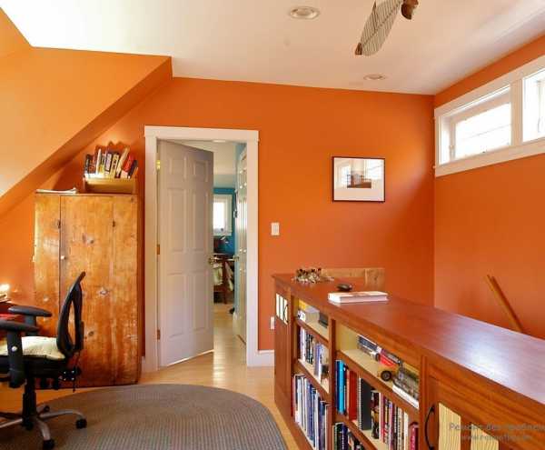 офис (домашний кабинет). Оранжевый не подходит для комнат, в которых отдыхают и расслабляются, для романтических спален, а также для слишком светлых и жарких комнат.