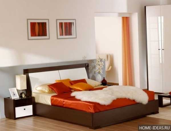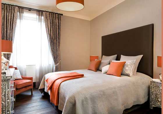 Оранжевый в интерьере спальни