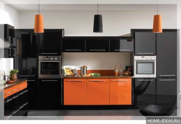 Стоит обратить внимание и на контрастное сочетание оранжевого и черного – выглядит такая кухня просто потрясающе – стильно и очень эффектно!