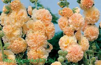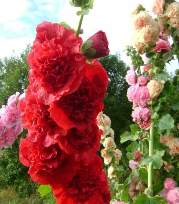 - Шток-роза имеет высокие стебли с многочисленными соцветиями различных оттенков и форм (в том числе махровых). Внешний вид растений имеет большое сходство с пионами. Активное цветение многолетника продолжается длительный период – с начала июня и до начала ноября.