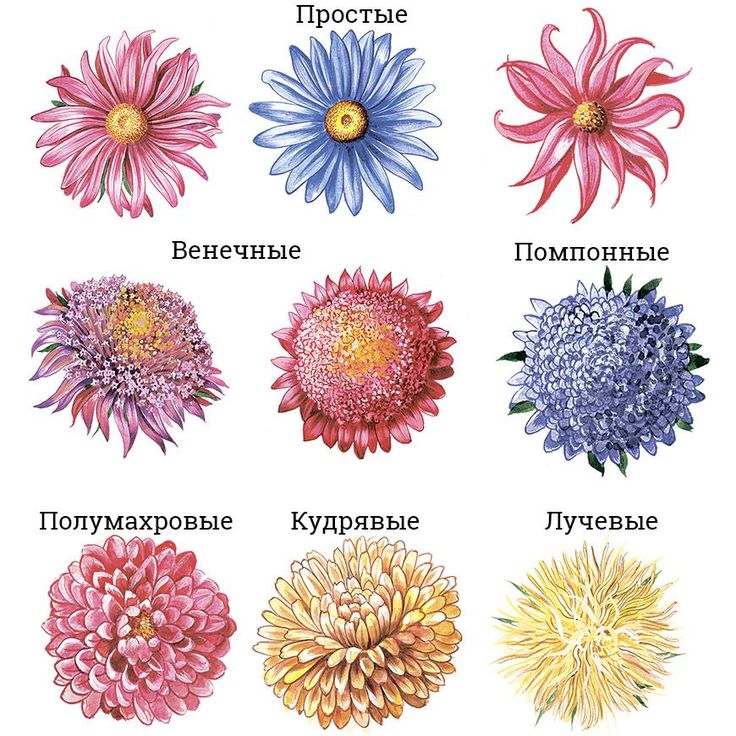 Солнцеликие цветы успеха и счастья напоминают крупные ромашки разной расцветки: от белой и нежно-розовой до бордовой, кроме синей. Они могут быть простыми, полумахровыми и махровыми, мелко- и крупноцветковыми.