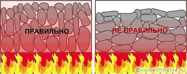 Π Π°ΡΠΏΠΎΠ»Π°Π³Π°ΡΡ ΠΊΠ°ΠΌΠ½ΠΈ ΡΠ΅ΠΊΠΎΠΌΠ΅Π½Π΄ΡΠ΅ΡΡΡ ΡΠ»Π΅Π΄ΡΡΡΠΈΠΌ ΠΎΠ±ΡΠ°Π·ΠΎΠΌ: Π²Π½ΠΈΠ· ΡΠΊΠ»Π°Π΄ΡΠ²Π°ΡΡ Π±ΠΎΠ»Π΅Π΅ ΠΊΡΡΠΏΠ½ΡΠ΅, Π·Π°ΡΠ΅ΠΌ ΠΊΠ°ΠΌΠ½ΠΈ ΡΡΠ΅Π΄Π½Π΅Π³ΠΎ ΡΠ°Π·ΠΌΠ΅ΡΠ°, Π½Π°Π²Π΅ΡΡ ΡΠ°ΡΠΊΠ»Π°Π΄ΡΠ²Π°ΡΡ ΠΊΠ°ΠΌΠ½ΠΈ ΠΌΠ΅Π»ΠΊΠΈΠ΅. ΠΡΠΎΠ²Π΅ΡΡΡΠ΅, ΡΡΠΎΠ±Ρ ΡΠ΅ΡΠ΅ΡΠΊΠ°, ΡΠ°ΡΠΏΠΎΠ»ΠΎΠΆΠ΅Π½Π½Π°Ρ ΠΌΠ΅ΠΆΠ΄Ρ ΠΊΠ°ΠΌΠ΅ΡΠΎΠΉ ΡΠ³ΠΎΡΠ°Π½ΠΈΡ ΠΏΠ΅ΡΠΊΠΈ ΠΈ ΠΊΠΎΠ½ΡΠ΅ΠΉΠ½Π΅ΡΠΎΠΌ Ρ ΠΊΠ°ΠΌΠ½ΡΠΌΠΈ Π±ΡΠ»Π° ΠΏΠ΅ΡΠ΅ΠΊΡΡΡΠ° ΠΌΠΈΠ½ΠΈΠΌΠ°Π»ΡΠ½ΠΎ. ΠΠ°ΠΌΠ½ΠΈ Ρ ΠΎΡΡΡΡΠΌΠΈ Π²ΡΡΡΡΠΏΠ°ΡΡΠΈΠΌΠΈ ΠΊΡΠΎΠΌΠΊΠ°ΠΌΠΈ ΠΌΠΎΠΆΠ½ΠΎ Π½Π΅ΠΌΠ½ΠΎΠ³ΠΎ ΠΎΠ±ΡΠ΅ΡΠ°ΡΡ β ΠΏΡΠΎΠΈΠ·Π²Π΅ΡΡΠΈ ΡΠ²ΠΎΠ΅ΠΎΠ±ΡΠ°Π·Π½ΡΡ ΠΎΠ±Π²Π°Π»ΠΎΠ²ΠΊΡ.