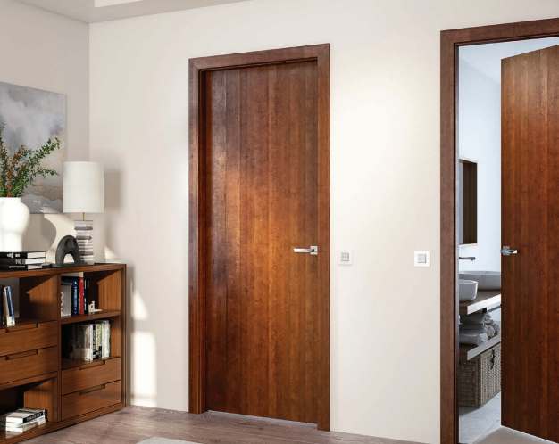 Самый дорогой тип дверей, но и самый прочный, двери из цельного дерева имеют ряд преимуществ. В зависимости от типа используемой древесины они предлагают различные узоры зерен. Они также обеспечивают наибольшую шумоизоляцию из всех дверей. Тем не менее, твердая древесина может меняться со временем в зависимости от изменений влажности.
