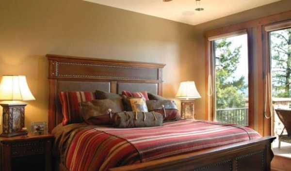 Спальня дает возможность не ограничиваться в выборе. В ней главное — придерживаться чувства меры и равновесия. Оптимальным решением станет отделка стен в натуральных тонах, такой ход придаст помещению природности и наполнит его положительным настроением и эмоциями. Основное правило для такой комнаты – полное отсутствие раздражающих и возбуждающих оттенков.