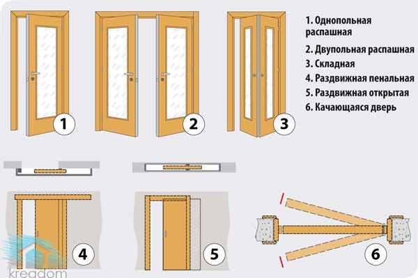 Виды дверей по способу открывания
