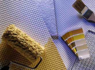 В случае с флизелиновыми и стеклообоями их наклеивают в сухом виде на стену, намазанную клеем. Они ложатся на стену очень ровно, поэтому нет необходимости долго орудовать шпателем. Чтобы сохранить тиснение, лучше воспользоваться обычным малярным валиком. Красить стеклообои под покраску можно больше раз, чем флизелиновые.